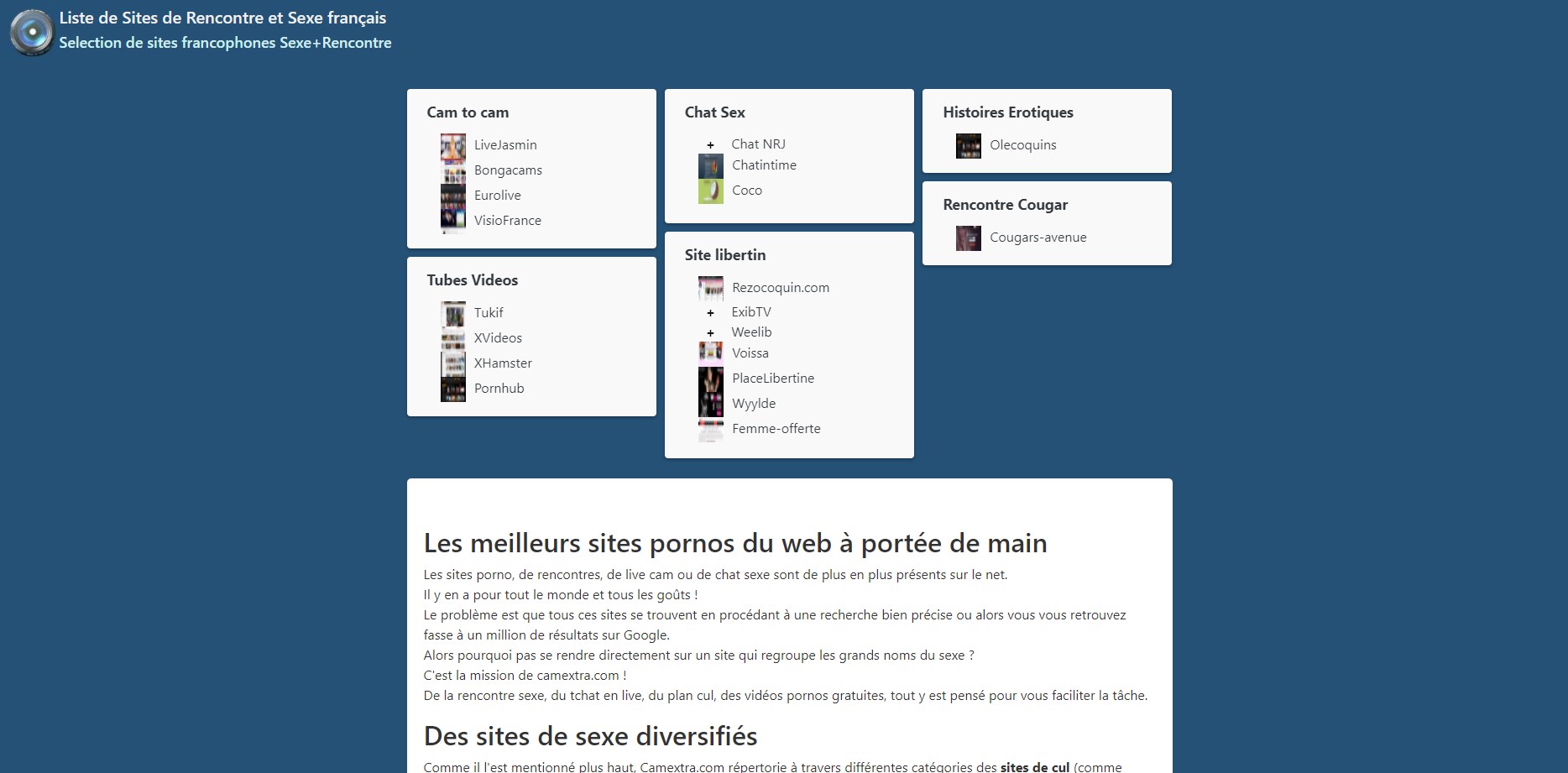 Ranglijsten van pornosites zijn allemaal goed en wel, maar er zijn ook lijsten van datingsites. Als je op zoek bent naar betrouwbare sites voor libertijnse ontmoetingen, cougars of erotische verhalen, op camextra krijg je alleen het beste. De links verwijzen naar veilige sites die over de hele wereld bekend zijn. Of het nu een cam 2 cam site is om opgewonden te raken met een vreemde live via webcam of een chat site zoals ChatintimeHet staat er allemaal op. Je bent hier ook aan het juiste adres voor een lijst met videobuizen, deze keer iets klassieker.